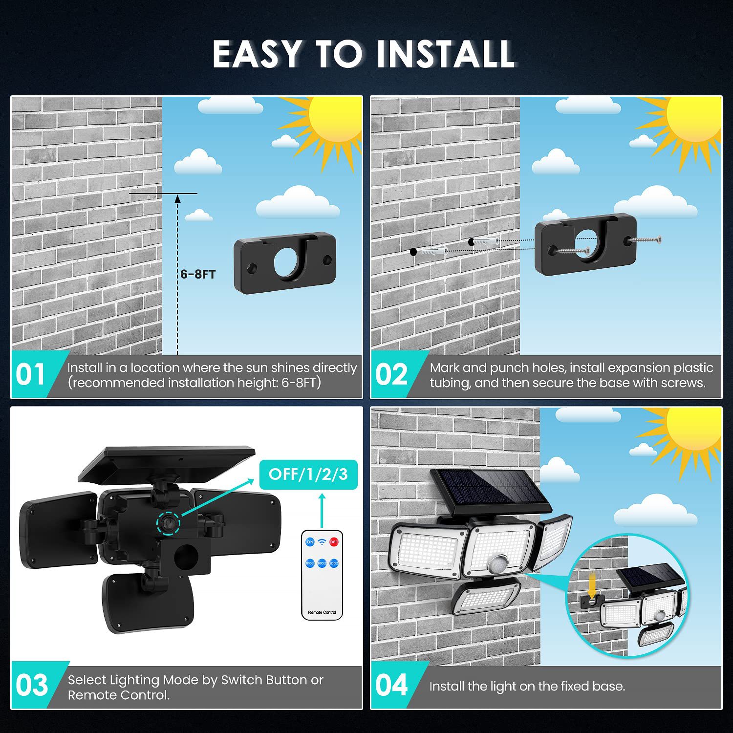 太阳能四头壁灯遥控