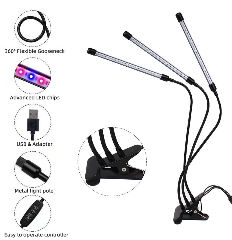 小夹子三管白光植物灯